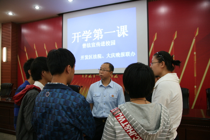 开学第一天,刑事法官深入东北石油大学为新生讲授“开学第一课”
