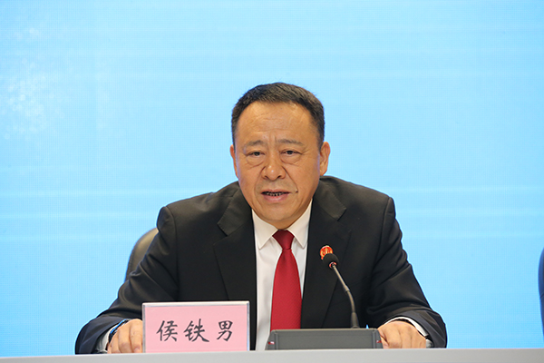 省法院党组成员、执行局局长侯铁男作新闻发布。 朱丹钰 摄
