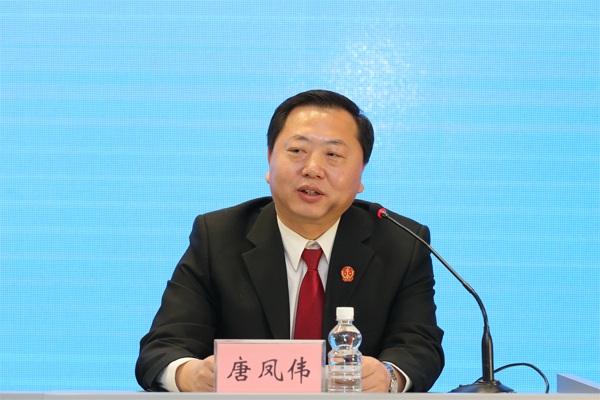 省法院宣传处副处长唐凤伟主持发布会。朱丹钰 摄