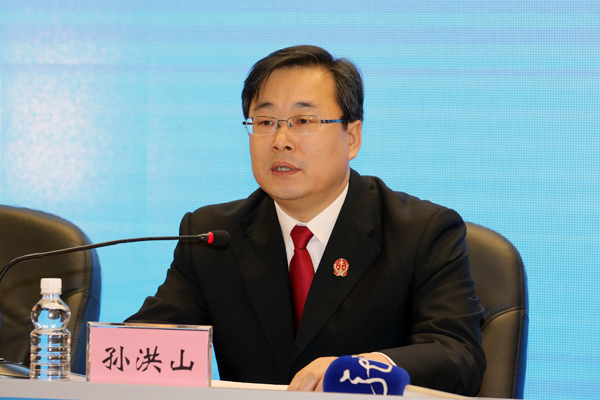 省法院党组成员、副院长孙洪山作新闻发布。朱丹钰 摄