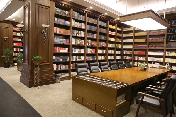 为了能把装万卷书的大房子装修好,机关服务中心处长冯晓春跑到全国各地“取经”:“北京高院图书馆设备先进;上海高院图书馆藏书多,很有文化氛围……”回来后,冯晓春将紧挨着图书馆、百余平方米的院领导食堂拆除,变成了法官沙龙活动室,又在图书馆内分隔出两间小型的高清影院和放音室。