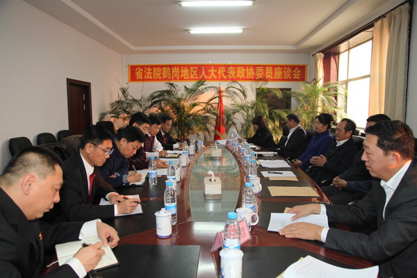 本次座谈会是全省法院深入开展以“优化两个环境”为主题的“双访双征”活动的一项重要工作内容。座谈会上,史景山同志代表省法院向参加座谈会的人大代表、政协委员通报了全省法院推进司法改革情况和保障大局、优化环境等工作情况,听取了代表、委员关于法院工作的意见和建议。鹤岗市人大常委会党组书记、副主任赵晓岩,市政协副主席于冶铭、王书玲、罗继生及部分省级人大代表、政协委员参加了座谈会,鹤岗中院党组副书记、常务副院长田守明,党组成员、副院长刘庆刚,党组成员、副院长鲁晓波参加会议。
