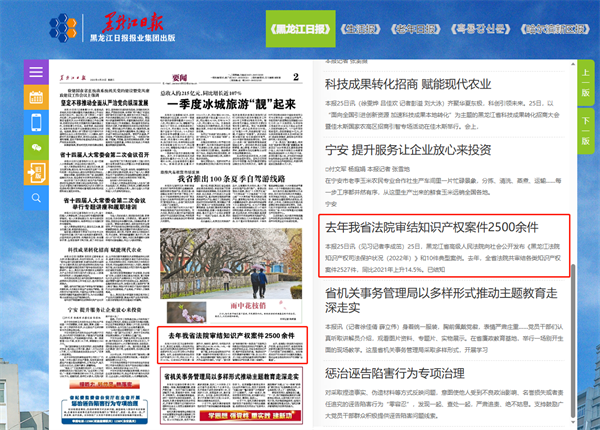 《黑龙江日报》:去年我省法院审结知识产权案件2500余件