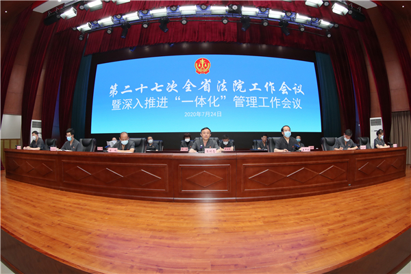 7月24日,省法院召开第二十七次全省法院工作会议暨深入推进“一体化”管理工作会议,认真贯彻落实党的十九届四中全会精神、全国两会精神和省委十二届七次全会、省委政法工作会议精神,总结去年以来工作,分析形势,交流经验,研究部署今后一个时期特别是今年下半年的主要工作。省法院党组书记、院长石时态出席会议并讲话。石时态强调,全省法院要坚持以习近平新时代中国特色社会主义思想为指导,把提升人民群众满意度作为中心任务来抓,以越是艰险越向前的精神,狠抓各项工作推进和落实,为统筹推进疫情防控和经济社会发展工作、实现决胜全面建成小康社会提供更加有力的司法服务和保障。