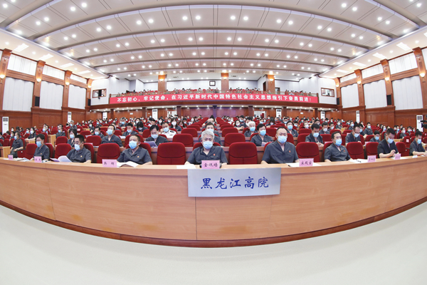 省法院党组副书记、常务副院长王中明主持会议并作总结讲话。省法院在哈院领导、16个中院院长及省法院全体干警在主会场参加会议,各中级、基层法院班子成员、全体干警在分会场通过视频方式参加会议。