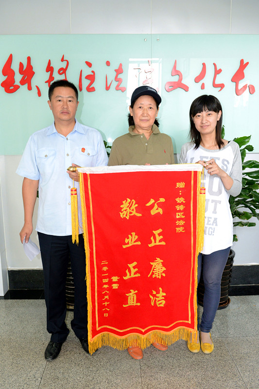 面对两难的情形,边力法官迎难而上,继续加大对被执行人宛某的执行力度,并通过其亲属和朋友多次做宛某的工作,经过多方共同协调、释法明理,终于促使宛某和董某达成和解,宛某一次性给付董某人民币85000元,并及时履行完毕。看到边力法官为自己的案件“跑断了腿、磨破了嘴”,董某母女非常感动,更为先前的误解感到惭愧,于是特地来到铁锋法院为边力法官送来一面大红锦旗,赞扬他“公正廉洁、敬业正直”。