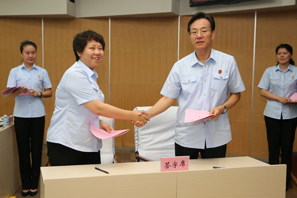 张述元院长与齐齐哈尔中院签订责任状。朱丹钰 摄
