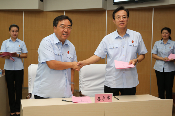 张述元院长与哈尔滨中院签订责任状。朱丹钰 摄