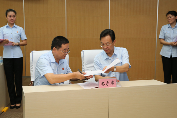 张述元院长与农垦中院签订责任状。朱丹钰 摄