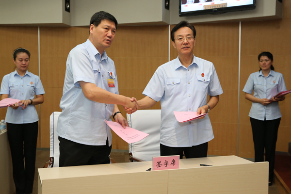 张述元院长与七台河中院签订责任状。朱丹钰 摄