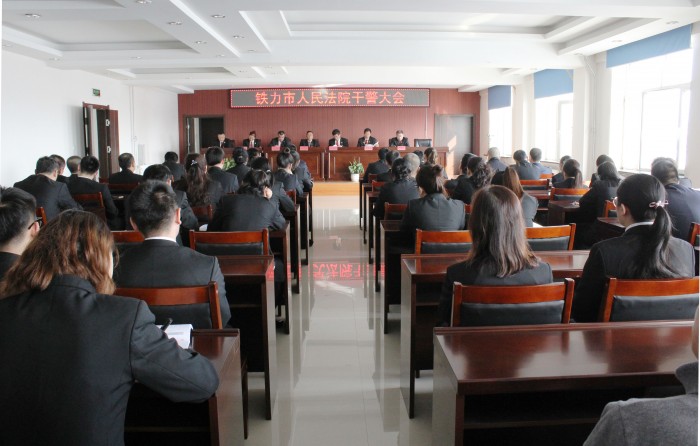 近日,铁力市法院召开全体干警大会,贯彻落实全市法院工作会议精神,对2018年工作进行再部署,重点对执行工作改革进行部署。
