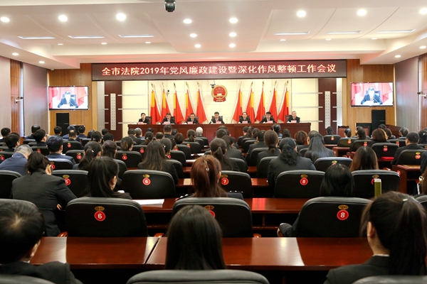 朱晓天要求,2019年全市法院党风廉政建设和深化作风整顿工作一要加强思想政治建设,着力夯实“不想腐”的思想基础。树牢接受党的绝对领导意识、增强纪律规矩意识、增强主体责任意识;二要加强廉政制度建设,着力构建“不能腐”的制度铁笼。发挥“关键少数”作用,强化廉政风险防控,抓好经常性监督管理;三要加强问题查处力度,着力营造“不敢腐”的高压态势。切实加大问责力度,以零容忍态度惩治司法腐败,支持纪检监察部门履职尽责;四要严肃党内政治生活,营造良好的政治生态。增强党内政治生活的政治性、时代性、原则性、战斗性,加强意识形态工作,坚持正确的选人用人导向;五要持之以恒正风肃纪,推动司法作风持续好转。进一步深化作风整顿,坚决整治损害群众利益的不正之风,努力“让打官司不求人”由承诺变为现实。