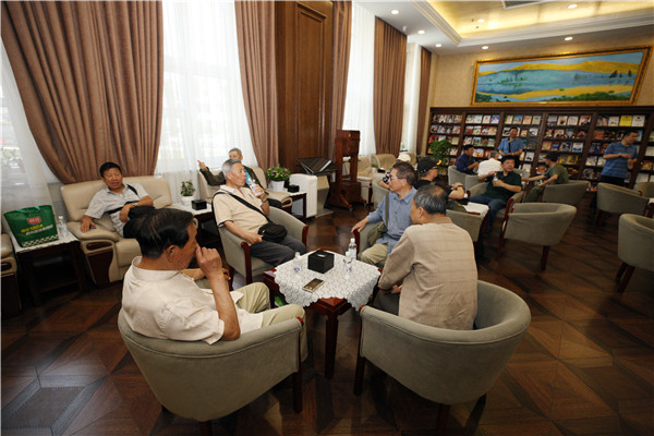 在二楼文化大厅合影留念 赵炳松 摄