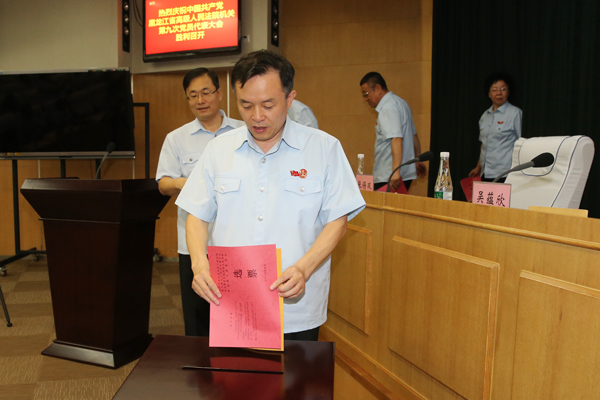 9月14日上午9时,经中共黑龙江省直属机关工作委员会批准,中共黑龙江省高级人民法院机关隆重召开第九次党员代表大会,听取并审议了院机关第八届党的委员会、纪律检查委员会工作报告和党费收缴使用、管理情况的报告,选举产生了省法院机关第九届党的委员会和纪律检查委员会。省法院党组书记、院长石时态出席会议并讲话。省直机关工委副书记李大忠出席会议并讲话。