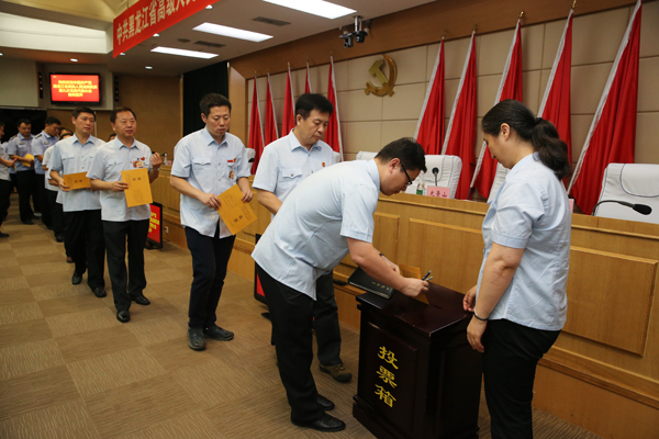 与会代表投票选举省法院机关第九届党的委员会和纪律检查委员会。朱丹钰 摄