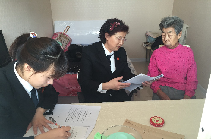 在老人家中,法官经询问确认诉讼请求是其真实意思表示,接下来认真进行风险告知并指导举证,悉心指导当事人完成立案各项手续,解答了老人提出的法律问题。立案之后,老人激动地说:“法官真像样,事事为老百姓考虑,亲自上门立案,态度这么好,我们这些上了岁数的方便多了,谢谢你们!”