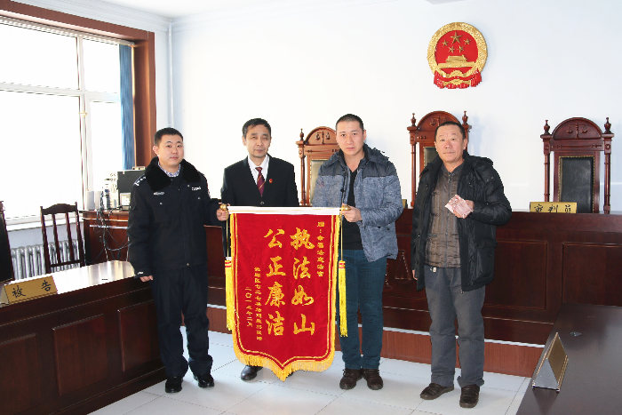 日前,家住黑河市的原告刘某委托家人为黑河市爱辉区法院罕达汽法庭的法官送来一面印有“执法如山,公正廉洁”的锦旗,感谢法官悉心调解为他要回赔偿款。