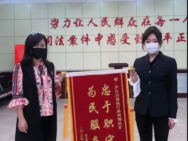 申请执行人表示:“法官有一颗亲民、爱民、为民的心,为了当事人权益,殚精竭虑、倾心付出。一面锦旗,聊表谢意!”