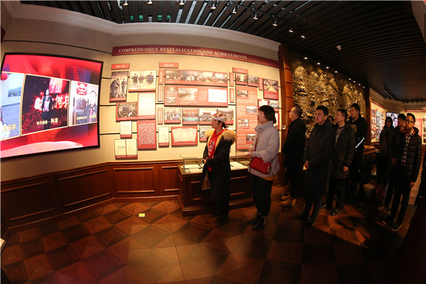在庄严的宪法墙前合影留念,在党建大厅观看党的光辉历程,回顾党和国家的事业发展,参观坚定了党员们心中的信仰,党员谢梦凡表示:“始终坚持党的道路,不动摇!”