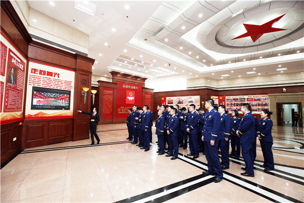 在党建大厅,大家认真倾听现场讲解,深刻感受党的伟大精神。驻足在庄严的红色宪法墙前,和法官一样,“一切为了人民,为了人民的一切”的神圣使命感油然而生。