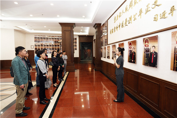 随后,大家参观了法官监督墙和新闻中心。院史悠扬,书香法院,大家依次在院史馆、图书馆感受了法院的文化魅力。