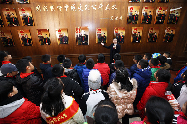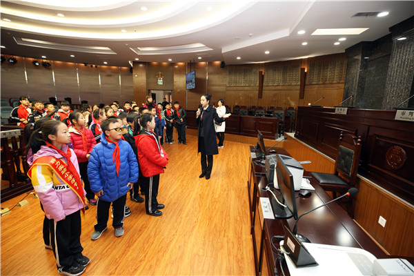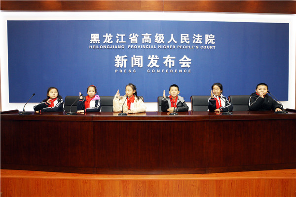 11月8日,立冬时节,穿着小棉衣,戴着小手套,围着小围脖的孩子们兴高采烈地走进省法院。他们是来自群力实验小学四年级的同学们。