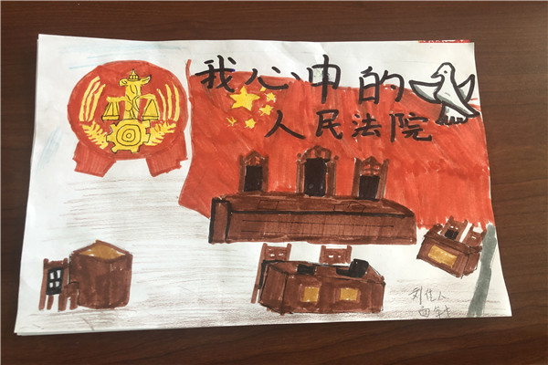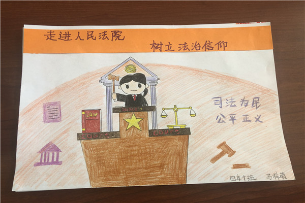 这是同学们画笔下的人民法院和人民法官。今天,同学们对法院多了一些了解,他们的心中对法律和正义就多了一份认识。
