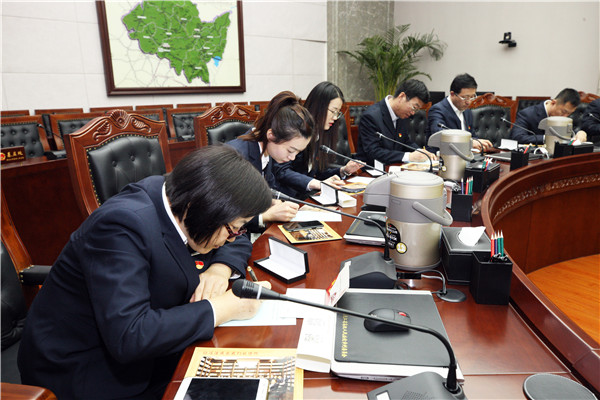 在审委会会议室观看《黑龙江高院200期开放日视频集锦》 赵炳松 摄