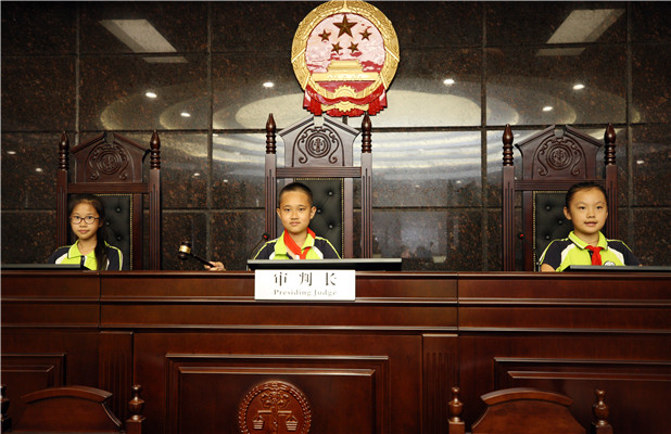 科技法庭是同学们最期待的地方,大家变身“小法官”,敲响公平正义之槌。