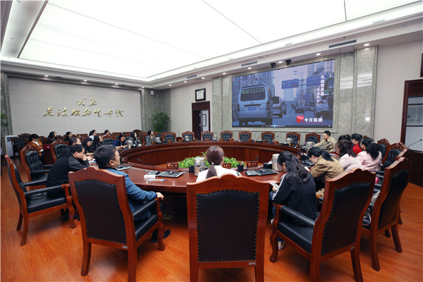 大家在审委会会议室观看了中央电视台《今日说法》大法官开庭专题片。
