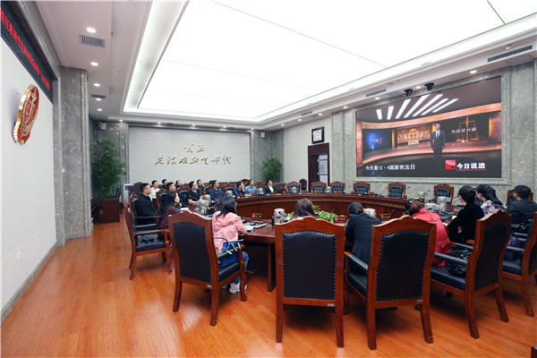 在审委会会议室,大家观看了中央电视台《今日说法》大法官开庭专题片。