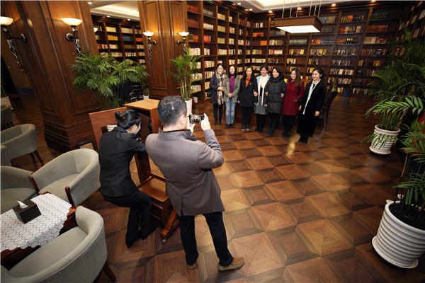 在图书馆,大家纷纷合影留念,记录下这珍贵的时刻。