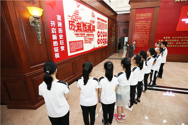 党建大厅里,同学们参观了六大篇章展墙和庄严的宪法宣誓墙,学习了党的伟大精神理论和大庆精神等黑龙江宝贵精神,感受司法文化和法院党建工作魅力。