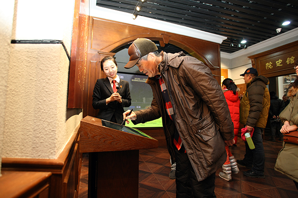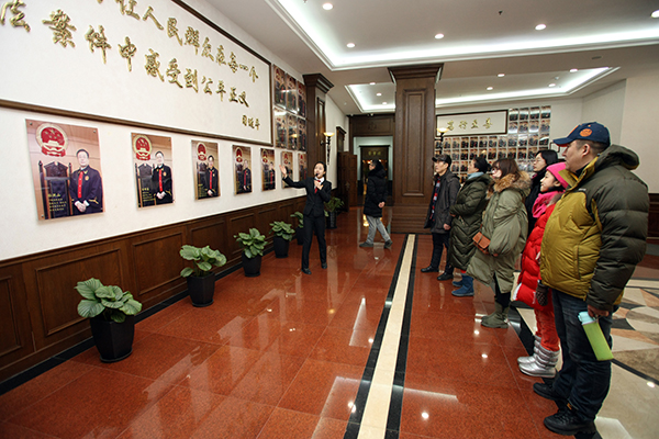 “这里好大呀”,一走进院史馆,小参观者就张大眼睛对爸爸说。大家在这里了解了黑龙江的法治进程:一张张老照片和案件记录了法院发展的每一步,“文革时,我才这么高,那个时候真的是……”勾起了老夫妻从前的回忆。还看到了现代化科技展示:翻开电子书籍,欣赏三维全息投影……大家还在电子签名处签名,见证省法院发展的重要时刻。