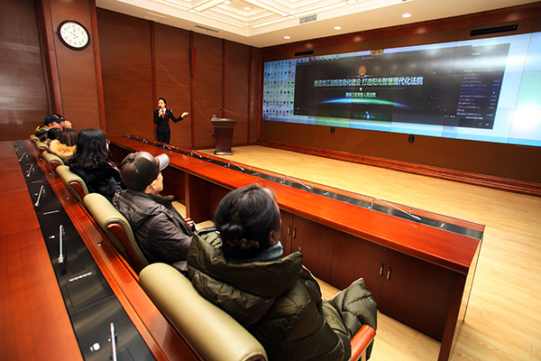 在新闻发布厅,讲解员为大家介绍了这里的四大功能设置,同时将黑龙江法院网以及四大司法公开平台一一介绍给大家,将省法院便捷百姓的信息化服务传递给更多的人。