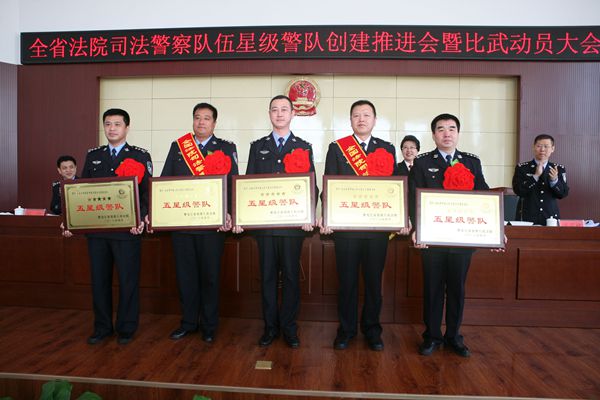 自2013年开始,省法院实施了《全省法院司法警察队伍五年基层建设纲要》,在全省法院司法警察队伍基层建设中叫响“按纲建队”,指出了司法警察基层基础工作阶段性任务、努力方向、工作措施等,以此破解对司法警察基层基础工作认识不到位,存在短板,进展缓慢和不均衡问题。同时提出“星级警队”建设标准和目标,号召全省中、基层法院 把“星级警队”创建活动推向高潮。这次会议上,5个法院从不同角度介绍了落实基层建设纲要、创建“星级警队”的工作经验,6个法院进行了书面交流。