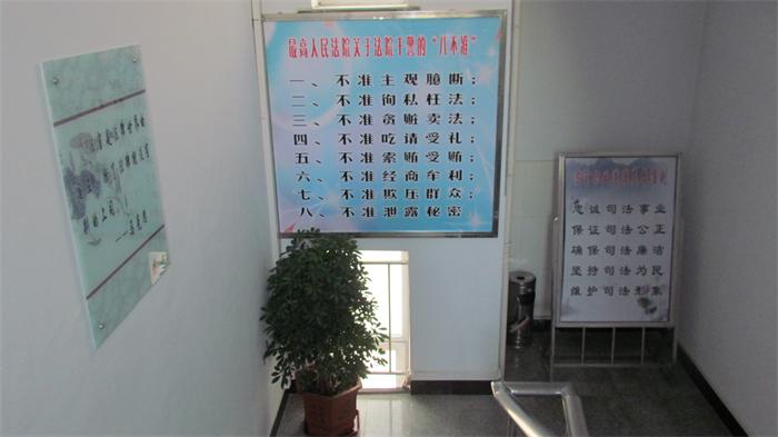 一楼主要业务庭室是立案庭。走廊主要通过悬挂审判流程制度,为民、劝诫、服务等字画、条幅内容体现制度文化、服务保障文化精神,以此引领全院干警以立案大厅为主要服务区域,充分做好服务保障工作。同时,劝诫即将进入诉讼程序的群众,要以平和、宽容的心态参加诉讼,避免出现敌视、过激言行,共同构建和谐、有序、文明的诉讼氛围。二楼主要业务庭室是民一庭和执行局。走廊主要通过悬挂规范司法行为,公平、公正、高效审理案件,注意保持环境等为主要内容挂饰,着重体现法院的行为文化和环境文化。将富裕法院在审判执行工作上所崇尚的司法精神追求昭告于民,宣传法院、树立法院和法官的良好形象,规范法官的司法行为。三楼在原有廉政图版的基础上,增添了寓意深刻的警句名言和古诗词,同时结合养眼醒目的莲子、梅花、玉石等象征清正廉洁的景物挂饰,既美化了审判环境,又起到了警示、教育作用,督促广大干警时刻绷紧廉洁公正这根弦。四楼以道德、品格、修养挂饰为主,在带给人以美感的同时,强化法官的职业道德,增强从业内涵,着重体现道德文化建设。五楼体现的是法院的精神文化建设。悬挂法官书法、摄影等文化作品,并展出了“富裕法院周末大舞台和文化长廊”掠影,集萃了富裕法院文艺汇演和举办文化长廊的经典瞬间,集中体现了富裕法院的精神文化风貌。