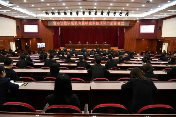 会议传达全市政法队伍教育整顿查纠整改环节动员部署会议精神,总结全市法院队伍教育整顿学习教育环节开展情况,并就开展好查纠整改环节工作进行部署。