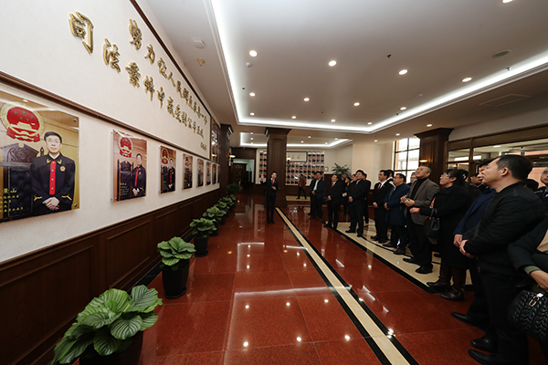 员额法官监督墙前了解法院员额制改革情况 朱丹钰 摄