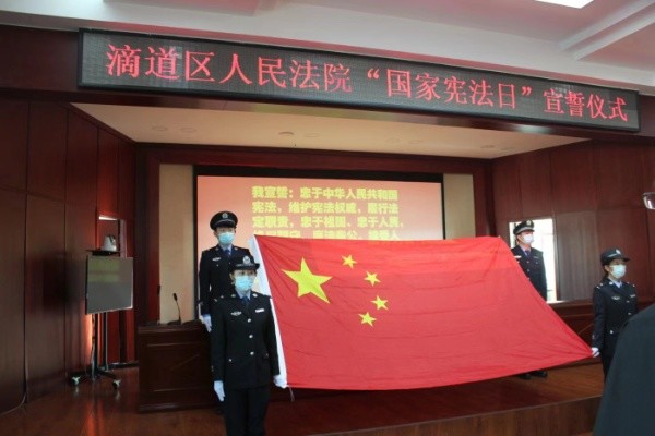 为迎接第九个“国家宪法日”,弘扬宪法精神,12月2日,鸡西市滴道区法院举行全体干警集体宣誓仪式。