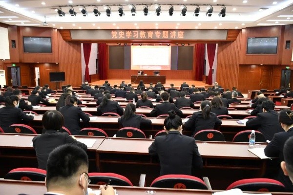授课中,李颖教授分别从为什么学习中共党史、中共党史的基本脉络、四史的逻辑关系及党史的根本经验和规律四个部分,讲述了中国共产党走过的百年光辉历程,用生动的实例让全体干警在一个个历史事件和重要节点中深刻感悟共产党员的初心使命和历史内涵,为全市法院开展好党史学习教育打牢思想基础。