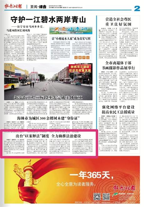 牡丹江中院出台“以案释法”制度 全力助推法治建设