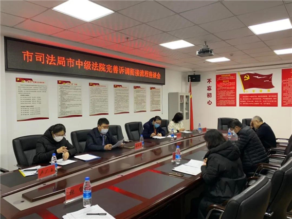 3月11日、12日,牡丹江中院与市司法局就调解平台建设及网络材料传输问题进行了进一步协调沟通,最终会签了《牡丹江市中级人民法院、牡丹江市司法局关于大调解衔接流程的若干规定(试行)》,初步确定了材料流转方式。3月13日上午,张亚亮、吕毓通过法院执行指挥中心视频网络,对全市法院即将开展的大调解工作进行部署和培训。