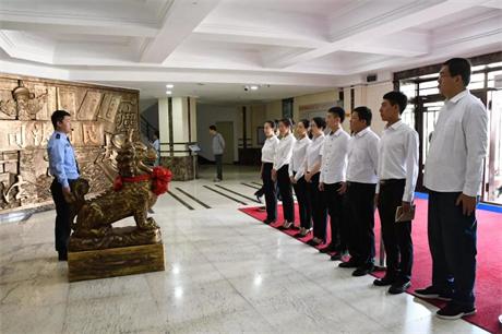 在法治浮雕墙前,新干警们认真地聆听着讲解员关于竹简、刑鼎等法制元素的介绍,“原来只是在书本上看到过这些元素,今天知道了它们背后的含义,太长知识了!”一位新干警说道。
