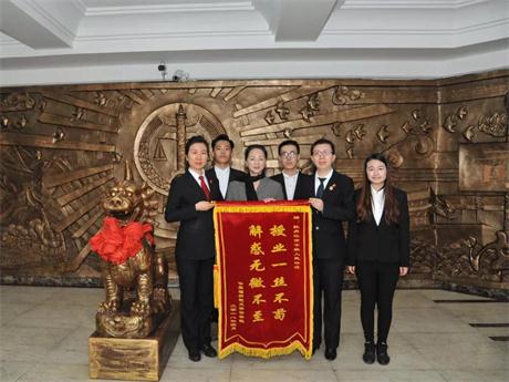 回访结束后,隋晶秋代表哈尔滨师范大学法学院向牡丹江中院赠送了一面“授业一丝不苟,解惑无微不至”的锦旗,感谢牡丹江中院在“全面深化合作、双向协同育人”方面所作出的贡献。