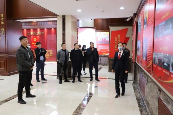 在党建大厅,嘉宾们全面回顾了中国共产党从无到有,不断发展壮大的红色历程,牢记共产党员全心全意为人民服务的根本宗旨。