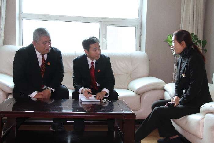 “你好,我们是牡丹江铁路运输法院立案庭的工作人员,前几天你们咨询有关立案的情况,我们来看一下有什么能帮助你们的”。10月20日,牡丹江金鼎国际大酒店的办公室来了两位牡丹江铁路运输法院立案庭的法官。几天前,金鼎国际大酒店打电话咨询有关立案的问题,今天他们专门上门服务。通过审查,法官当场对金鼎国际大酒店与他人的3起民事诉讼案件给予立案,对不够立案条件的,详细解释了法律的有关规定,金鼎国际大酒店的工作人员对法官热情、认真的工作态度点头称赞。