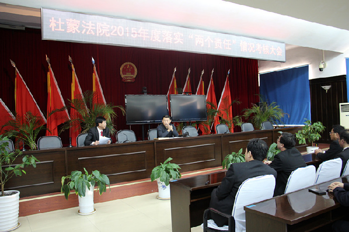 近日,杜尔伯特县人民法院召开了2015年落实“两个责任”情况考核大会,县纪检委有关领导出席了本次会议,纪检组组长袁晓冬代表院党组向纪检委领导及全体干警进行了领导班子述职述廉报告。报告结束后,全体干警为领导班子及党组成员填写了测评票。经测评,领导班子及党组成员的干警满意率均在99%以上。