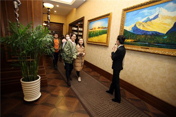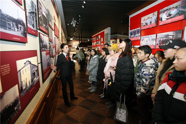 在院史馆,讲解员为师生们展示了黑龙江高院七十多年的风雨兼程。图文、实物、声光电等科技手段共同演绎了高院的历史变迁和辉煌成就。学生中有不少来自海南、重庆等地,对壁雕上面的巡回审判马车、大油田、大雪景兴趣颇深。
