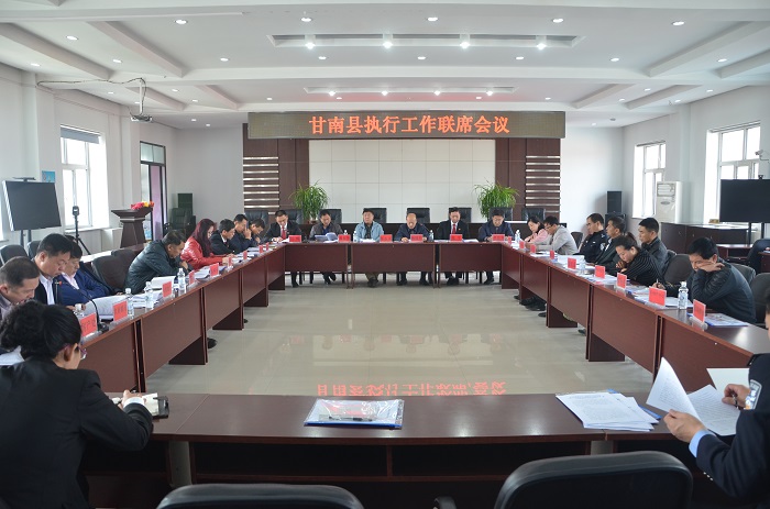 县委常委、政法委书记杨国君强调,发挥执行联动威慑作用,加强执行信息化建设,是解决“执行难”问题的关键所在,是树立人民法院司法权威的关键所在,也是建设诚信社会和法制社会的关键所在。甘南县法院要主动加强与各协助执行单位的沟通协调,各单位也要发挥各自部门的职能作用,积极协助配合,切实提高解决“执行难”问题的整体合力,共同为建设公正、高效、权威的诚信社会、和谐社会和法制社会做出各自应有的贡献。